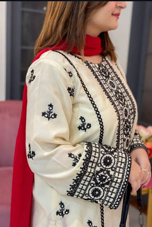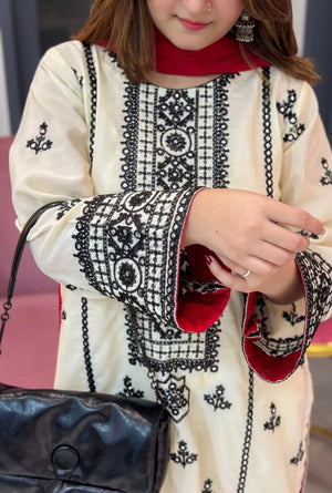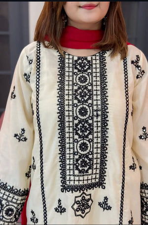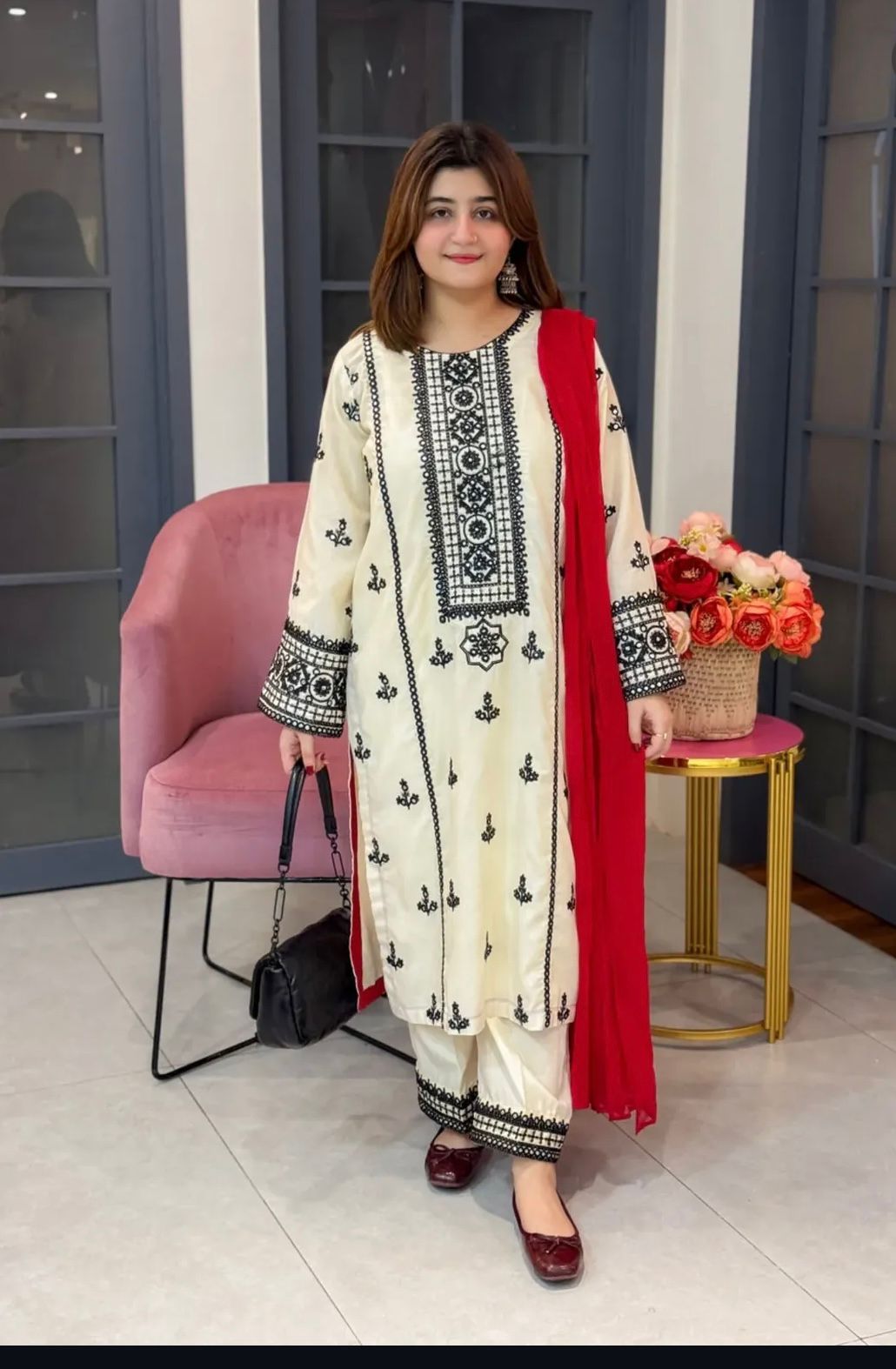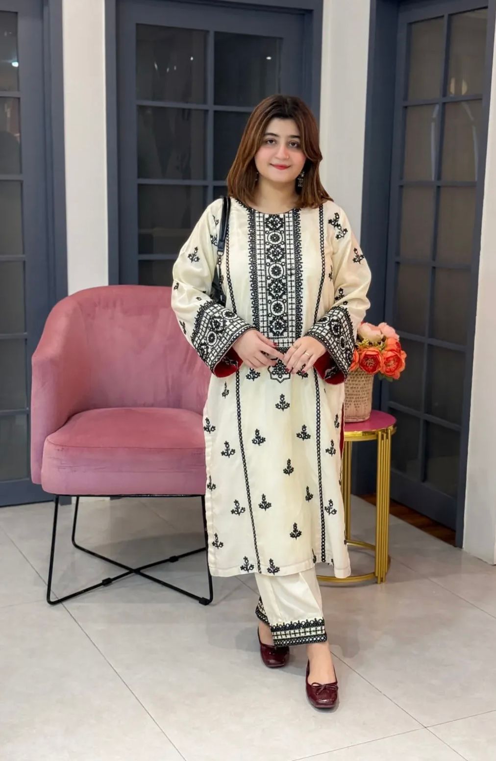 Upgrade your festive wardrobe with the Masooma Emb 2pc by Zoukelibas, where tradition meets modern elegance. Whether you’re searching for party wear dresses for women or elegant wedding party wear dresses, this outfit is designed to deliver style and comfort. Shop now and enjoy the charm of luxury stitched outfits in our winter dresses sale and end season collection.