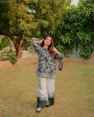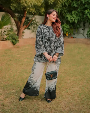 Embrace elegance and comfort with our stunning 2 Piece, Digital Grip 2 Piece available in both medium and large sizes. Crafted with premium quality fabric, this ensemble boasts a captivating floral and Geometric Elements with mirror work, adding a touch of sophistication to your wardrobe. Whether you're dressing up for a special occasion or simply elevating your everyday look, this ensemble is sure to make a statement. Embrace versatility and luxury with our Digital Grip Printed Co-Ord Set!