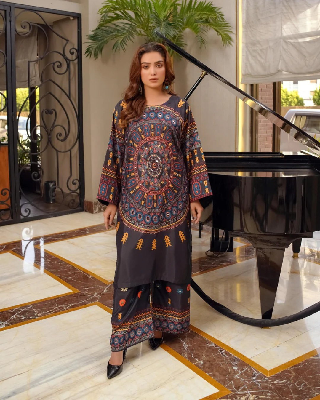 Embrace elegance and comfort with our stunning 2 Piece, Digital Swiss Mirror 2 Piece available in both medium and large sizes. Crafted with premium quality fabric, this ensemble boasts a captivating floral and Geometric Elements with mirror work, adding a touch of sophistication to your wardrobe. Whether you're dressing up for a special occasion or simply elevating your everyday look, this ensemble is sure to make a statement. Embrace versatility and luxury with our Digital Swiss Printed Mirror Co-Ord Set!