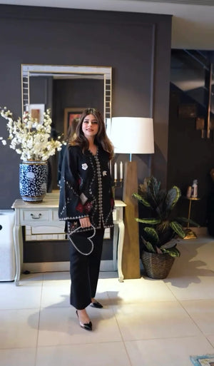Rameen – Embroidered 2-Piece Dress Experience elegance with Rameen, a beautifully embroidered 2-piece outfit crafted from luxurious Premium Linen. This ensemble features a standard-length shirt and a stylish trouser, carefully stitched to offer both comfort and a flattering fit. Whether you’re attending a wedding, a festive celebration, or a party with friends, Myna is your go-to choice to look confident, graceful, and effortlessly beautiful. Product Features: Fabric: High-quality Linen Design: Elegant embroidery Style: Standard-length shirt with trendy trouser Occasion: Perfect for weddings, events, and get-togethers Fit: Comfortable & flattering silhouette Availability: Sizes – Small, Medium, Large Note: Color may vary slightly due to photographic lighting Fabric: Premium Poly Lawn Includes: Embroidered Shirt & Stylish wide Trouser Size Chart (in inches): Small: Chest – 20.5”, Shirt Length – 30”–31”, Trouser Length – 38”–39” Medium: Chest – 21”, Shirt Length – 30”–31”, Trouser Length – 38”–39” Large: Chest – 23”, Shirt Length – 30”–31”, Trouser Length – 38”–39”